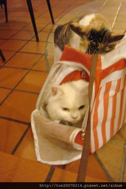 有沒有發現瞳瞳的袋子後面有隻小貓?