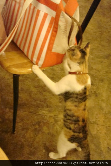 瞳瞳因為有其他貓,不開心,所以就跑到其他客人身邊去了。