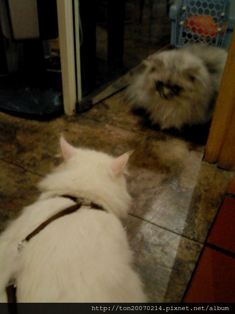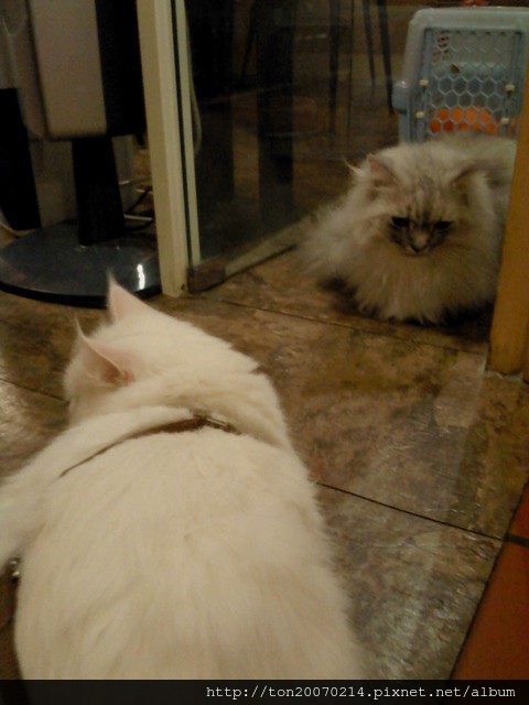 而瞳瞳也很好奇,一直看著他想幹嘛,可能因為不是貓,所以瞳瞳完全沒有兇他的意思。