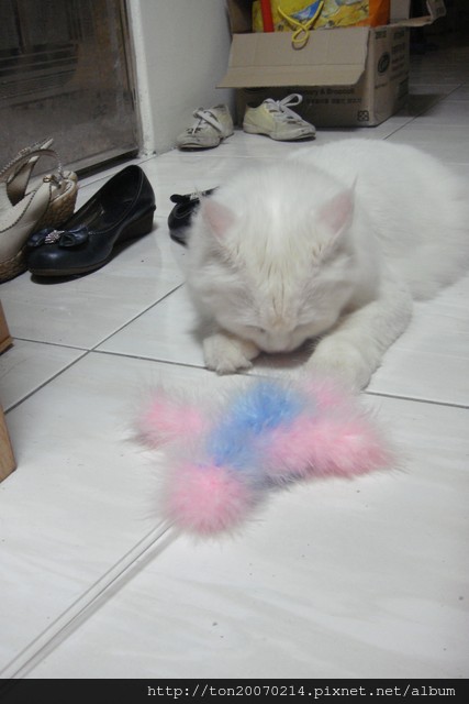七夕那天和妮妮麻吃飯,結果妮妮麻送瞳瞳一個羽毛逗貓棒:)